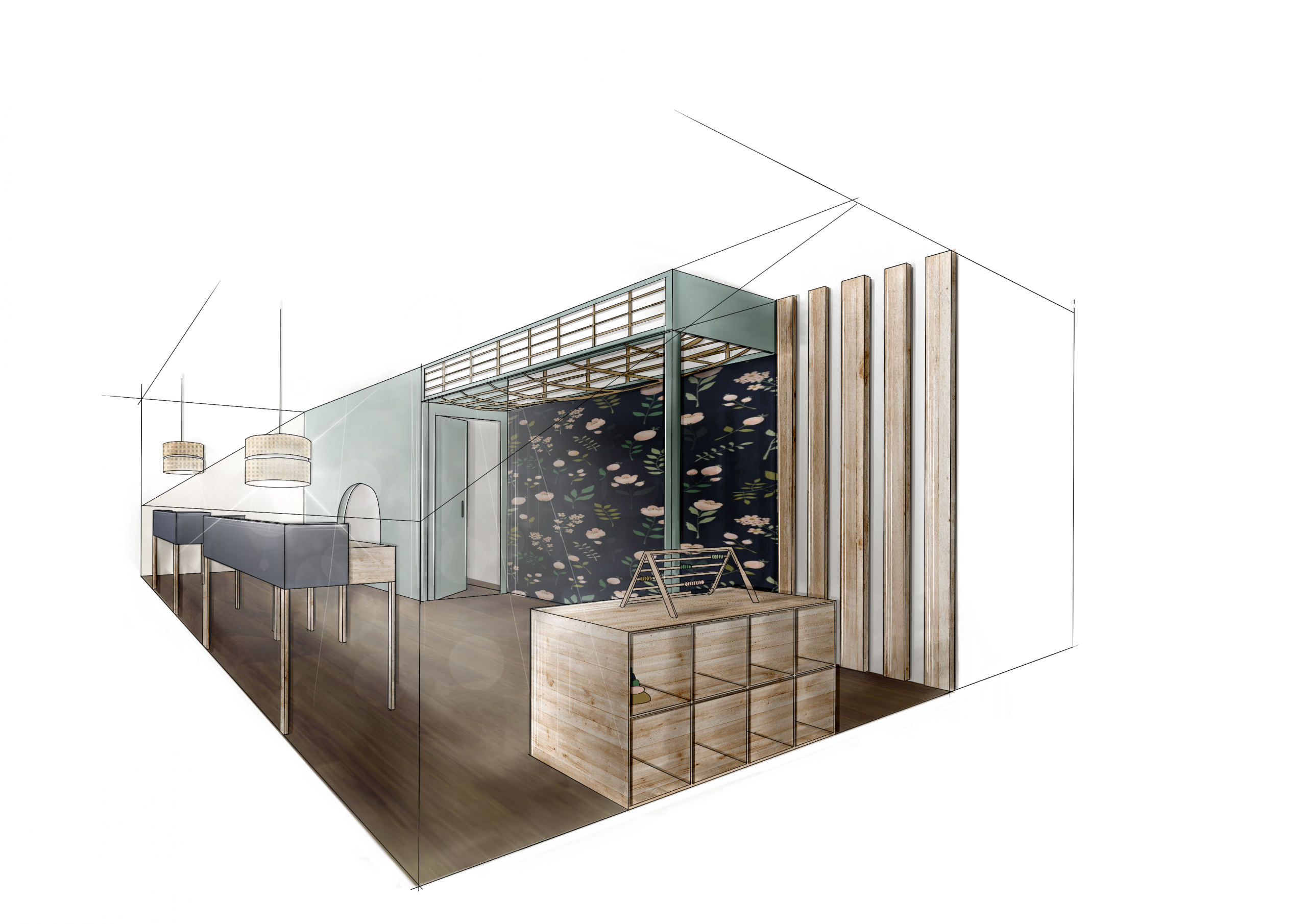 Vous recevez un croquis précis et réaliste, qui met en scène votre pièce avec sa nouvelle décoration.